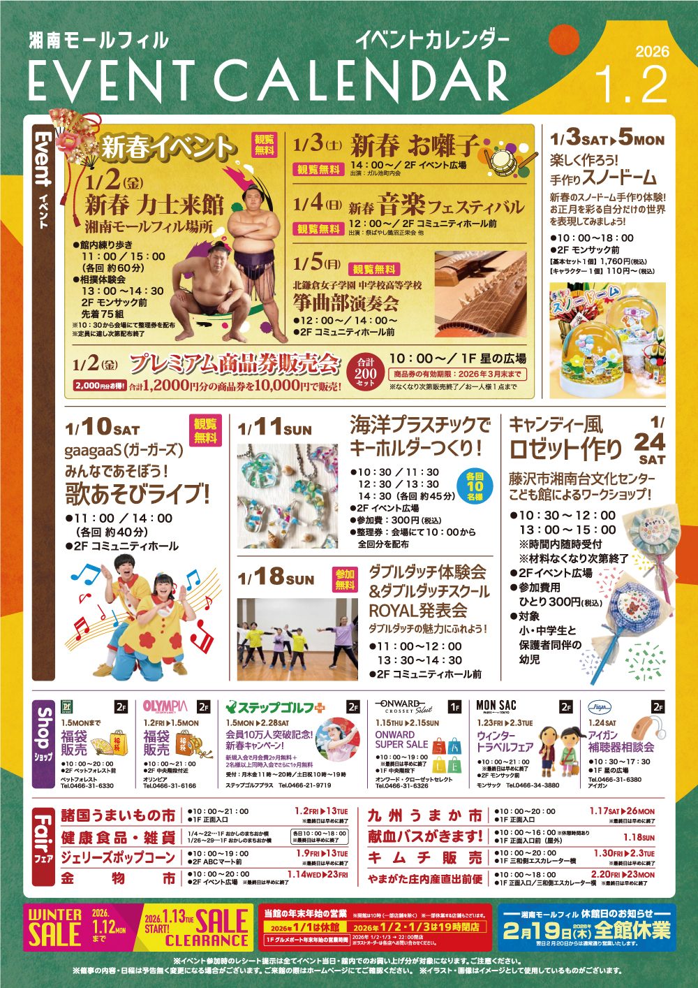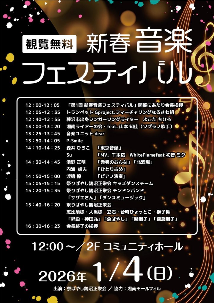 祭ばやし鵠沼正栄会による館内練り歩きも開催し新年を盛り上げます。