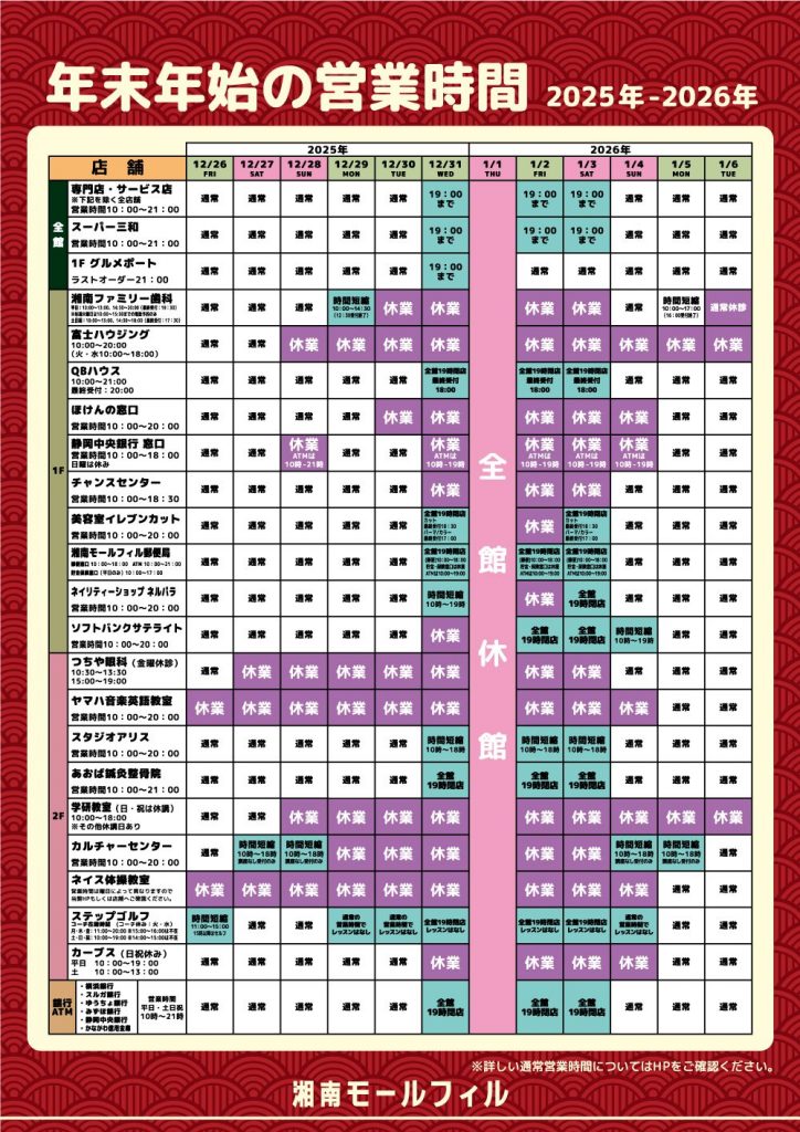 いつも湘南モールフィルをご利用いただきまして誠にありがとうございます。