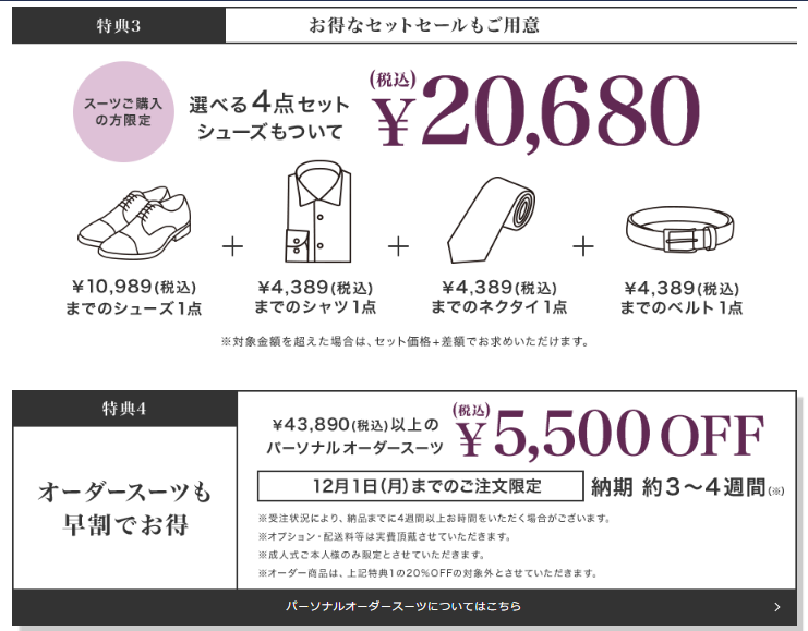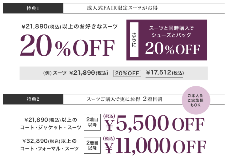 本体¥29,900(税込¥32,890)以上のスーツ・フォーマル・コート・ジャケット→2着目 ¥10,000 OFF