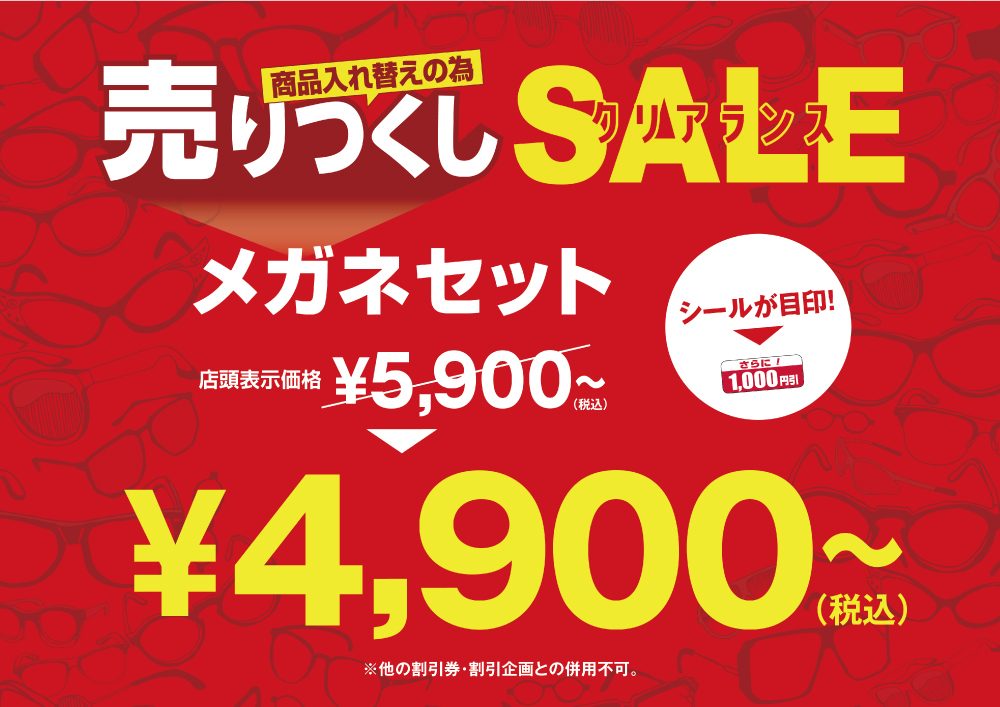 2026年2月19日(木)まで、メガネ・サングラスが大変お得な「売りつくしクリアランスSALE」を開催いたします。