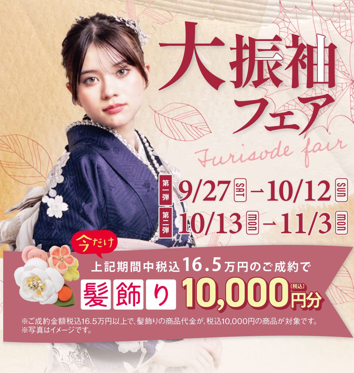 16.5万円以上のご成約で髪飾り税込10,000円の商品をプレゼント♪