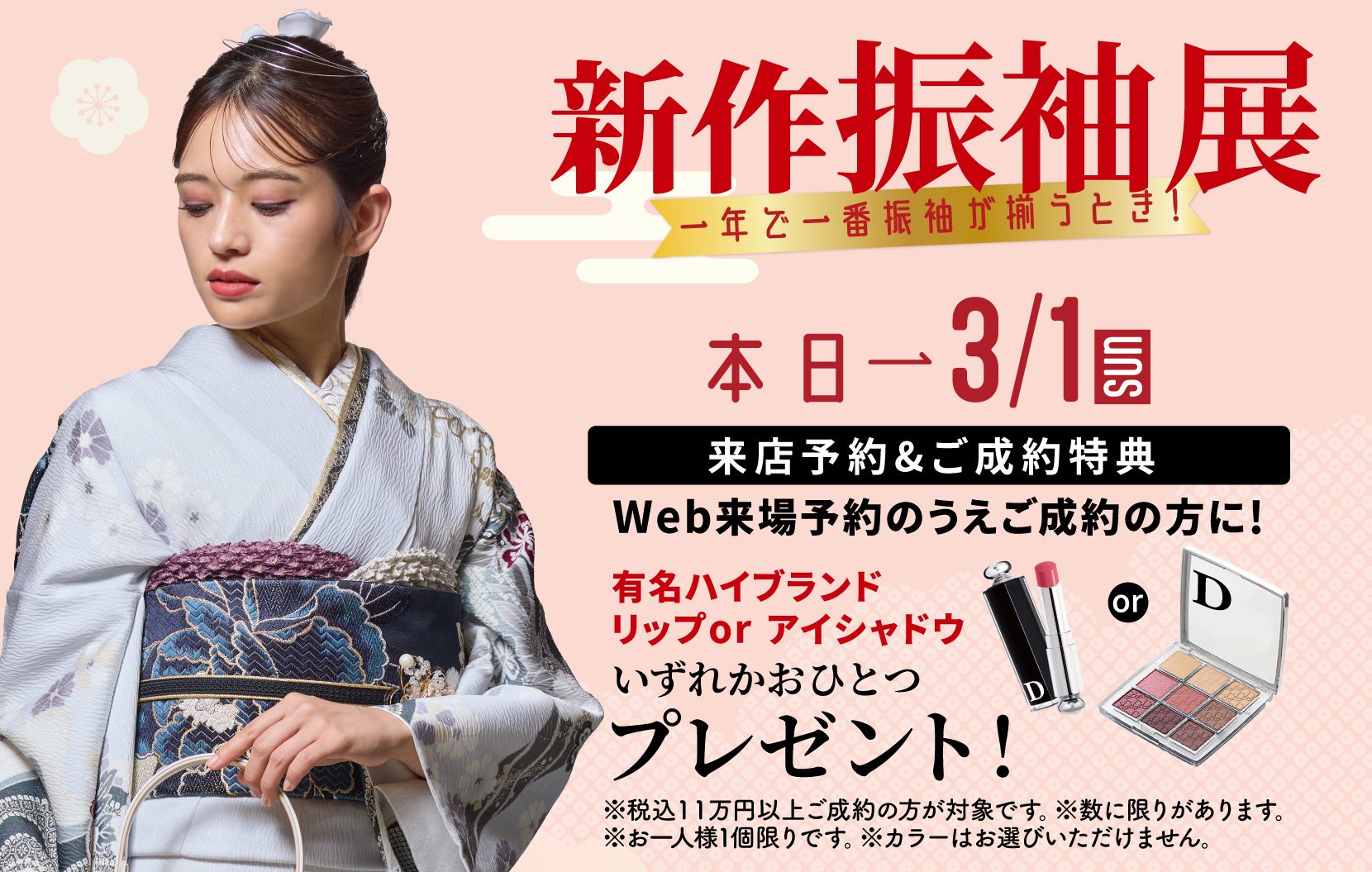 開催中、11万円(以上)ご成約の方に、振袖髪飾り10,000円(税込)分プレゼント!